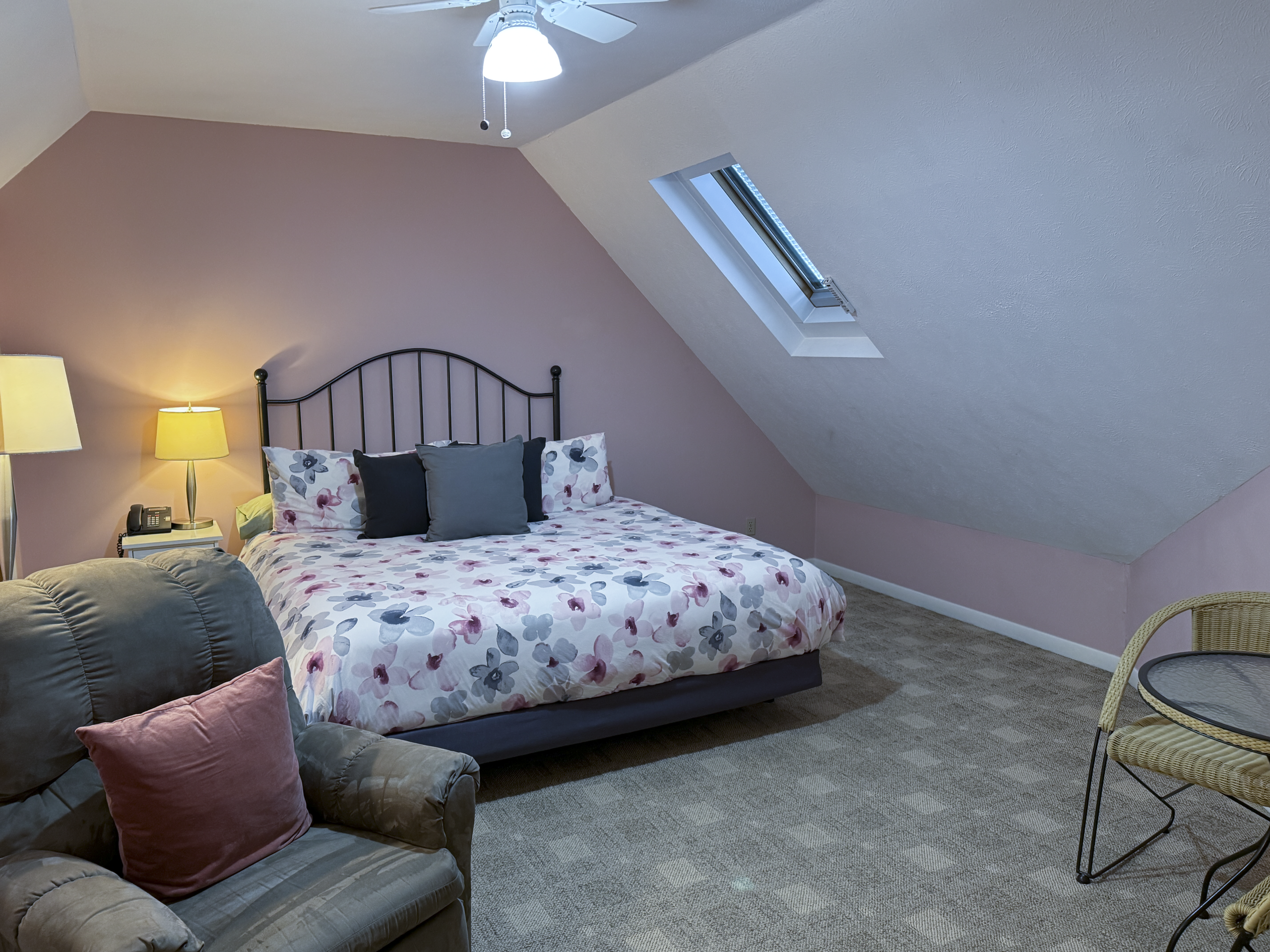 This second-floor room offers a king bed and a calm, comfortable setting. A great option for couples seeking a peaceful retreat.